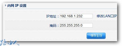一、登陆磊科路由器管理界面,点击网络配置―内网配置,修改磊科路由器LAN口IP地址。