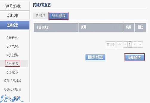 (1)进入路由器的配置界面,点击内网配置-内网扩展IP;